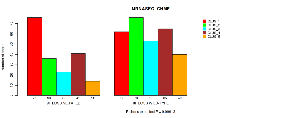 8p loss cnv correlated to 'CN_CNMF', 'MRNASEQ_CNMF', and 'MRNASEQ_CHIERARCHICAL'.
