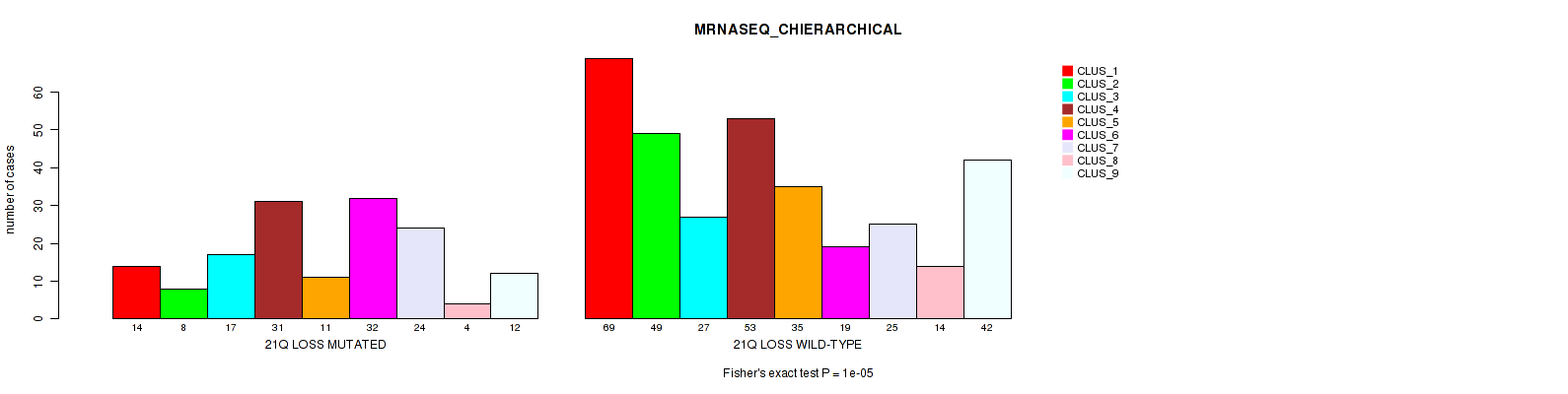 Figure S195. Get High-res Image Gene #78: '21q loss' versus Molecular Subtype #8: 'MRNASEQ_CHIERARCHICAL'
