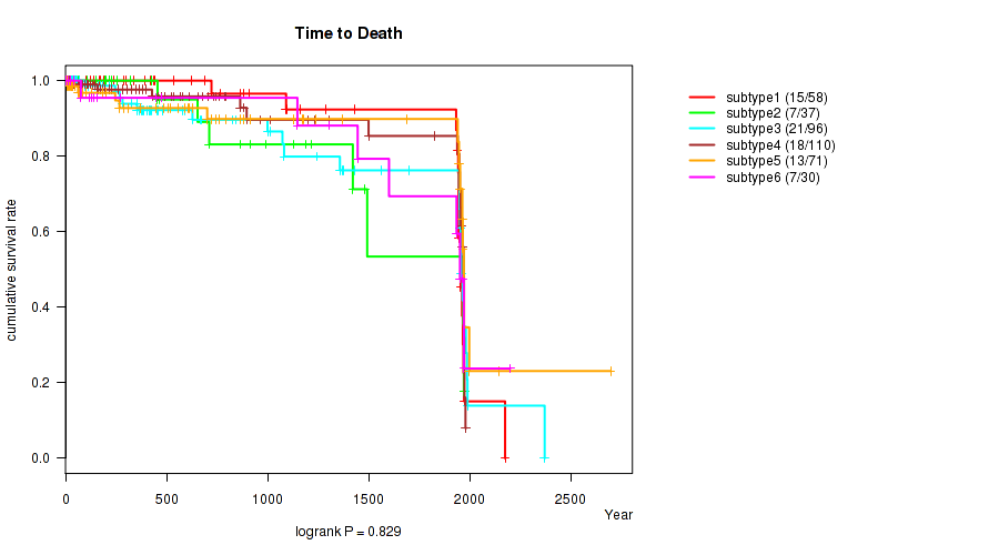 Table S165. Clustering Approach #12: 'MIRseq Mature cHierClus subtypes' versus Clinical Feature #1: 'Time to Death'