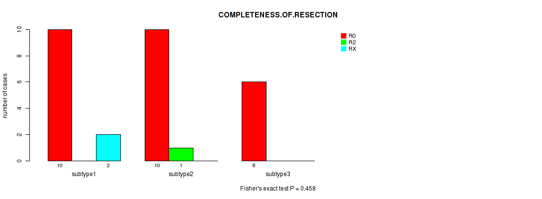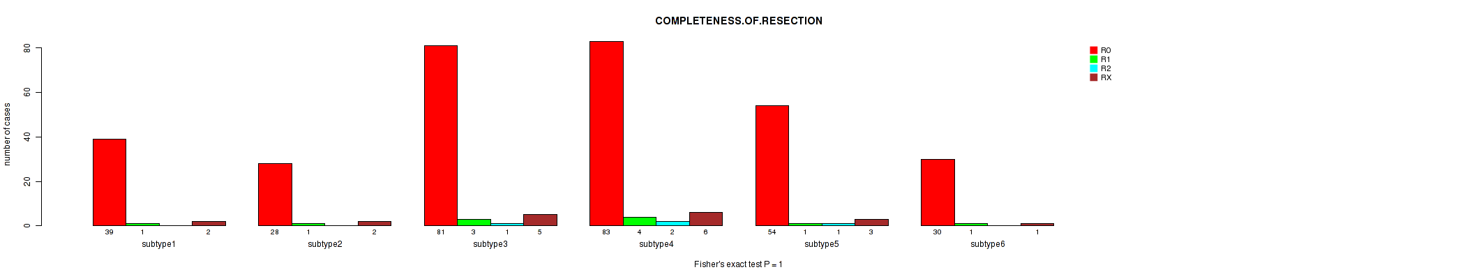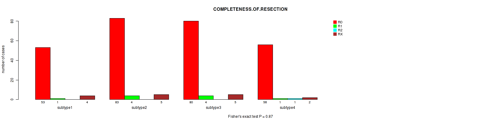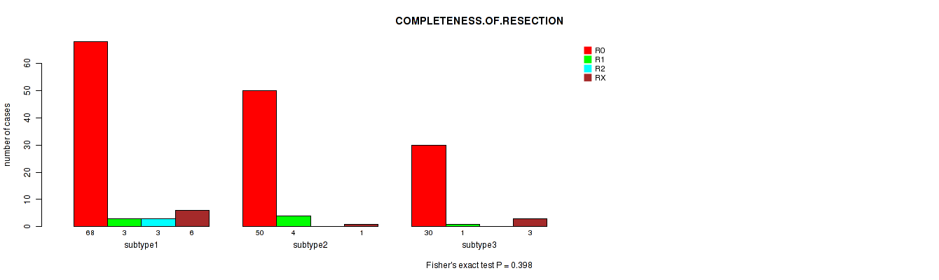 Figure S164. Get High-res Image Clustering Approach #12: 'MIRseq Mature cHierClus subtypes' versus Clinical Feature #12: 'COMPLETENESS.OF.RESECTION'
