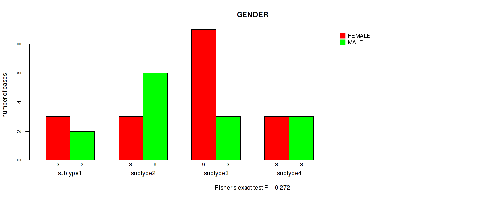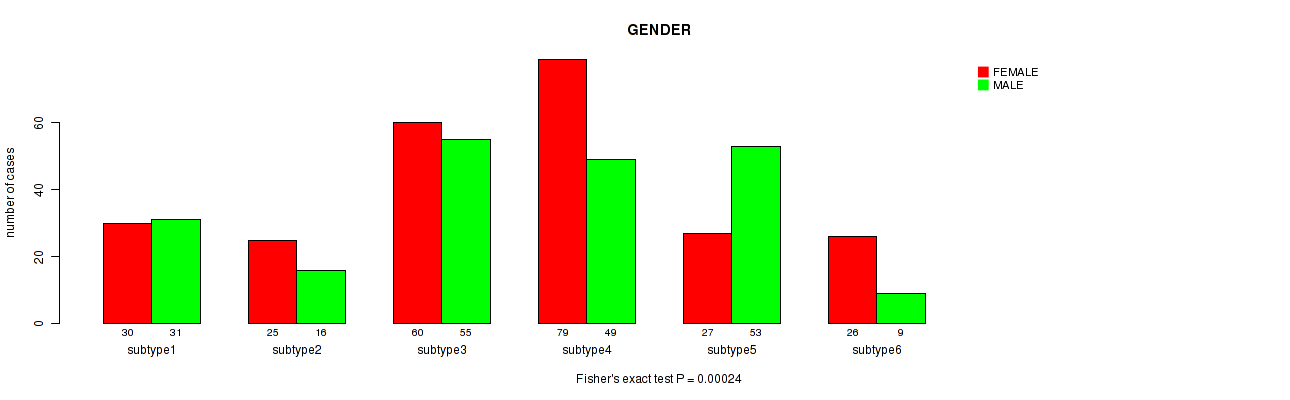 6 subtypes identified in current cancer cohort by 'MIRSEQ CHIERARCHICAL'. These subtypes correlate to 'GENDER'.