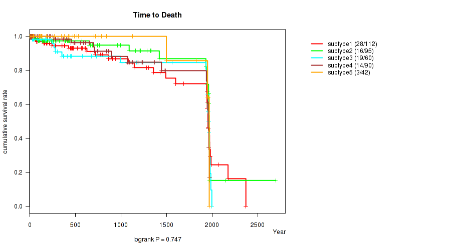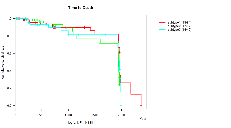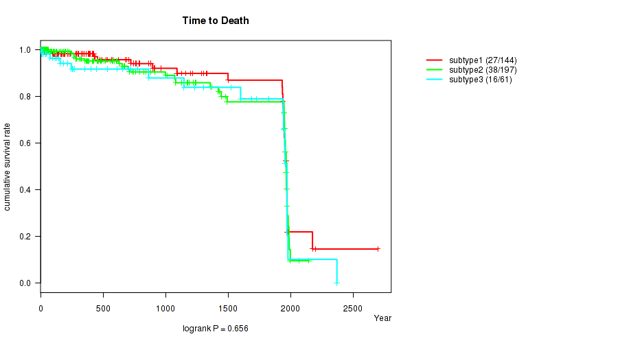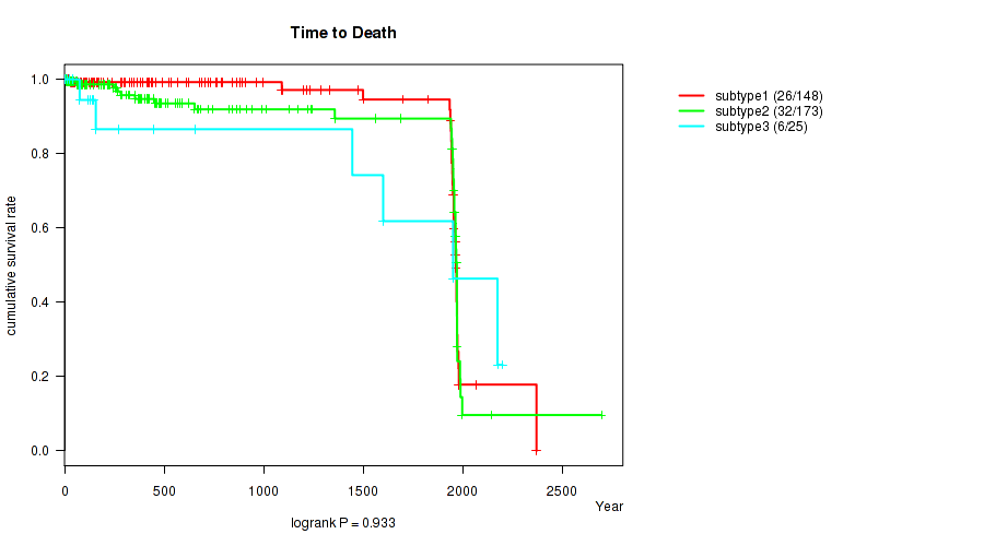 Figure S153. Get High-res Image Clustering Approach #12: 'MIRseq Mature cHierClus subtypes' versus Clinical Feature #1: 'Time to Death'