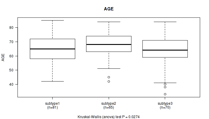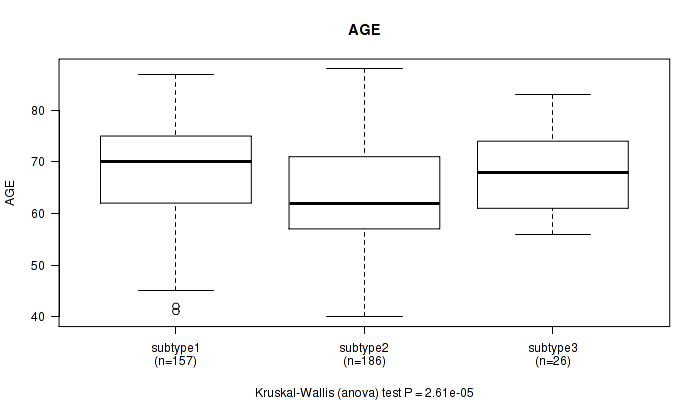 Consensus hierarchical clustering analysis on RPPA data identified 3 subtypes that correlate to 'AGE'.