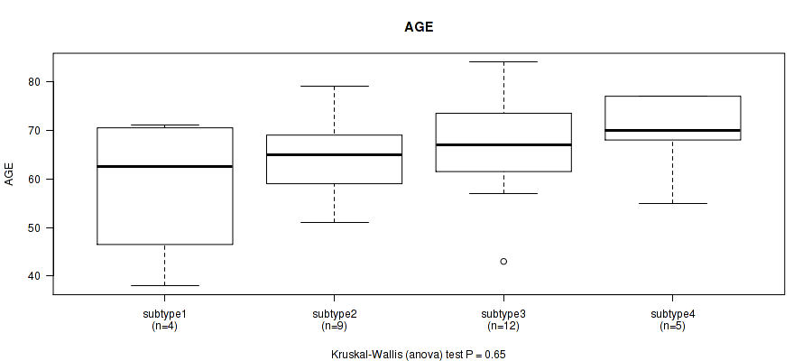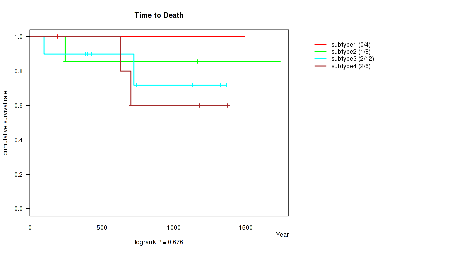 CNMF clustering analysis on array-based mRNA expression data identified 4 subtypes that do not correlate to any clinical features.