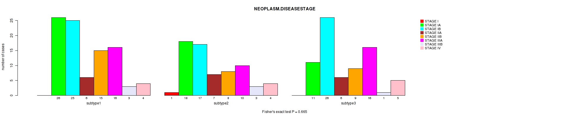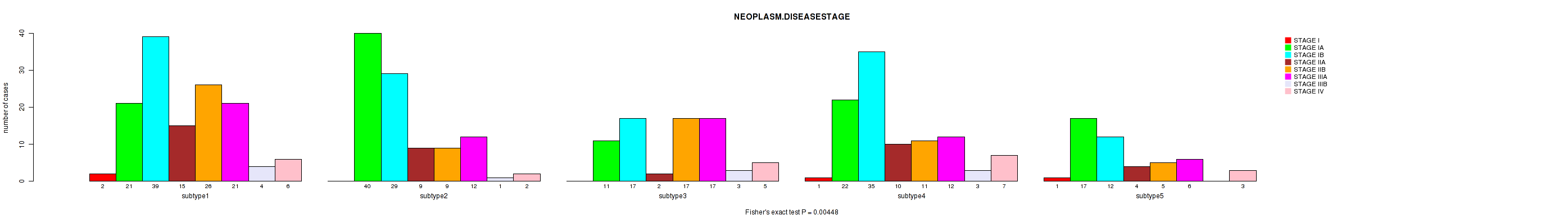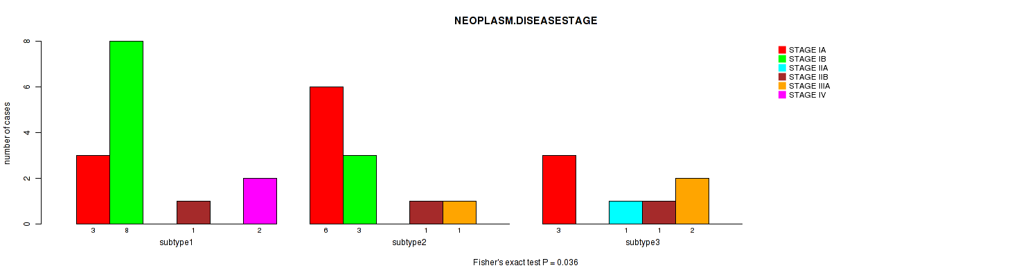 | NEOPLASM DISEASESTAGE | Fisher's exact test |