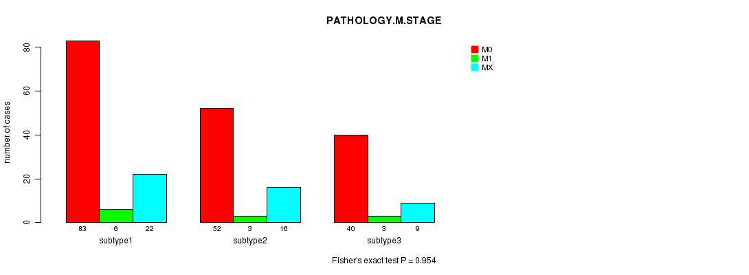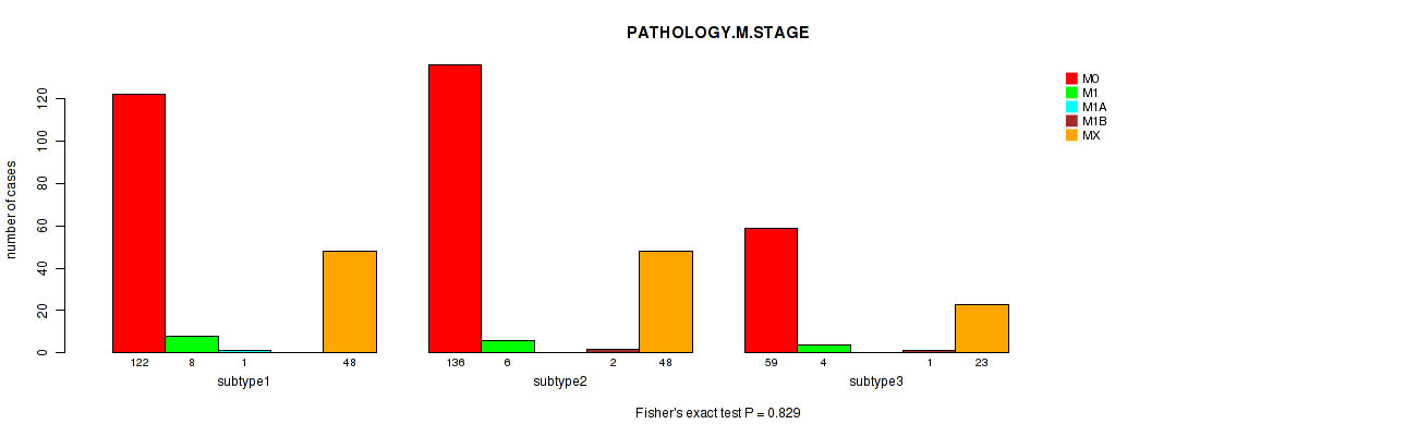 | PATHOLOGY M STAGE | Fisher's exact test |