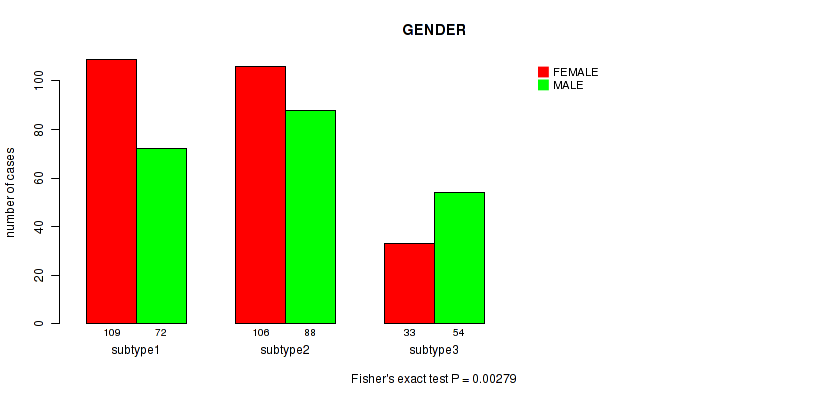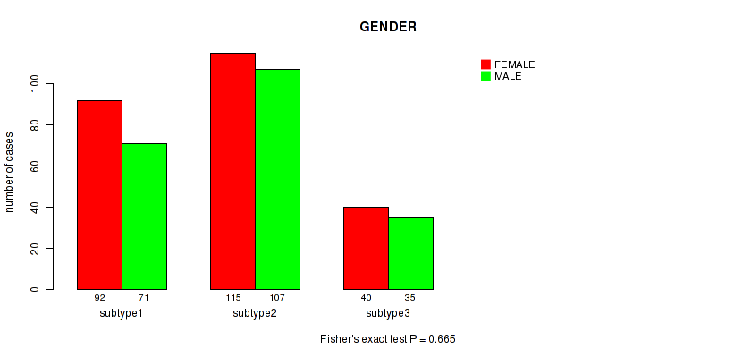 Figure S159. Get High-res Image Clustering Approach #12: 'MIRseq Mature cHierClus subtypes' versus Clinical Feature #7: 'GENDER'
