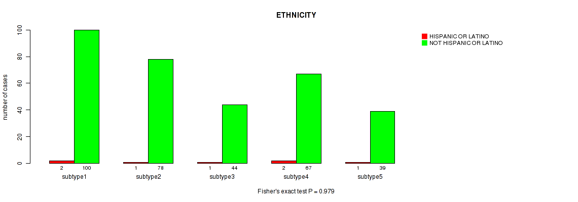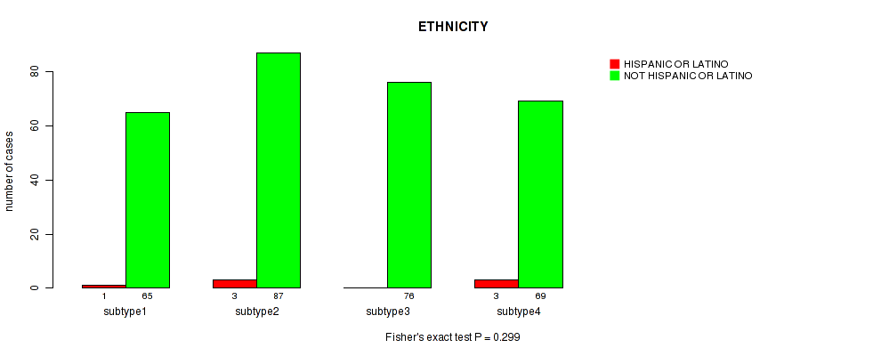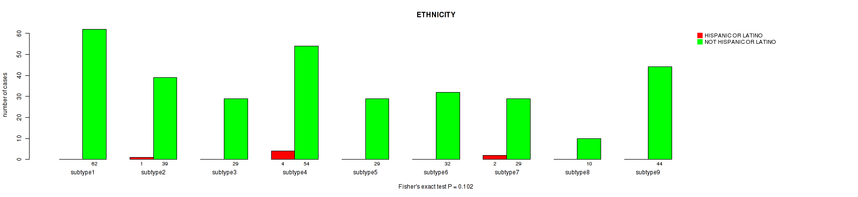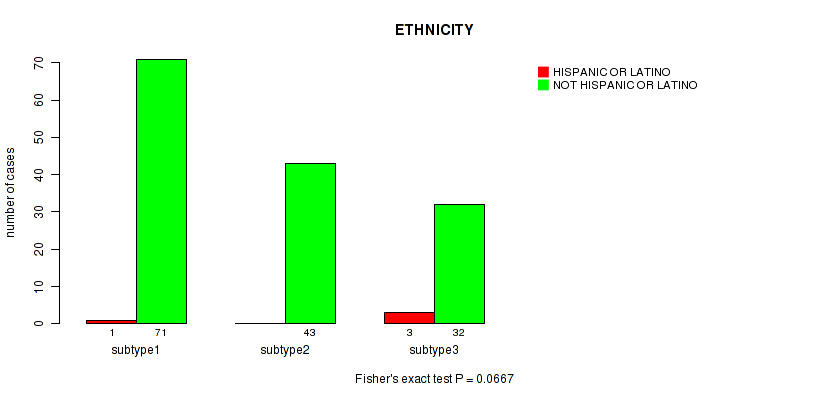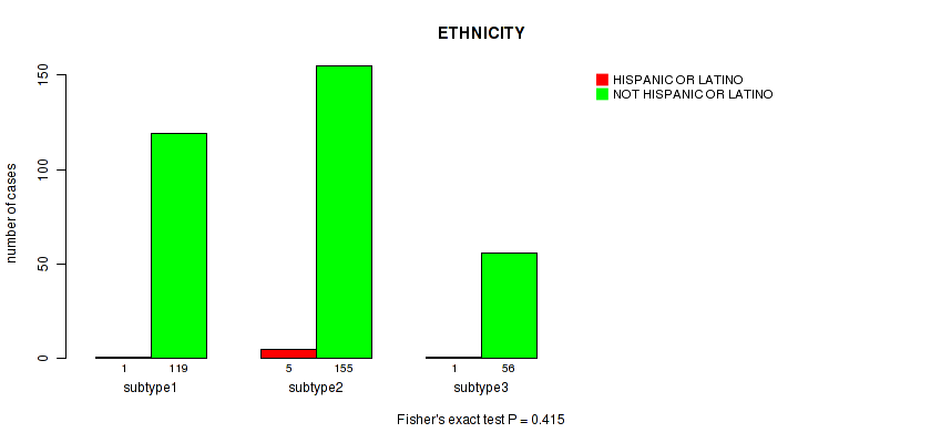 Figure S152. Get High-res Image Clustering Approach #11: 'MIRseq Mature CNMF subtypes' versus Clinical Feature #14: 'ETHNICITY'