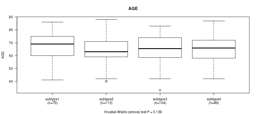 Figure S154. Get High-res Image Clustering Approach #12: 'MIRseq Mature cHierClus subtypes' versus Clinical Feature #2: 'AGE'