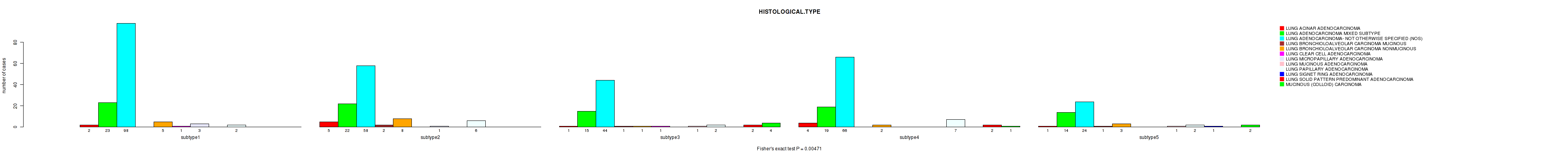 Figure S161. Get High-res Image Clustering Approach #12: 'MIRseq Mature cHierClus subtypes' versus Clinical Feature #9: 'HISTOLOGICAL.TYPE'