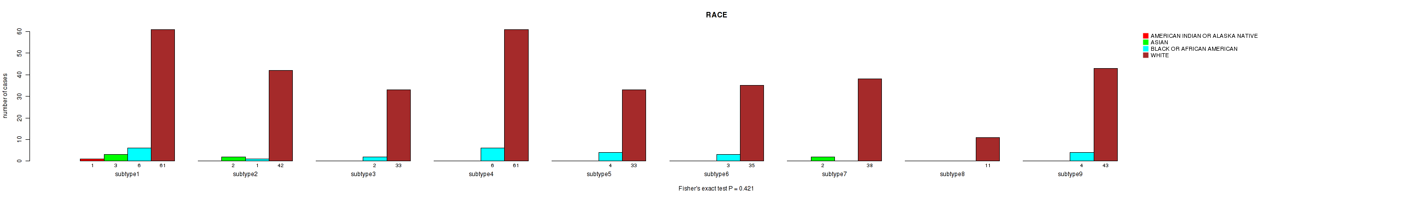 Consensus hierarchical clustering analysis on sequencing-based mRNA expression data identified 9 subtypes that correlate to 'AGE', 'NEOPLASM.DISEASESTAGE', 'PATHOLOGY.T.STAGE', 'GENDER', and 'HISTOLOGICAL.TYPE'.