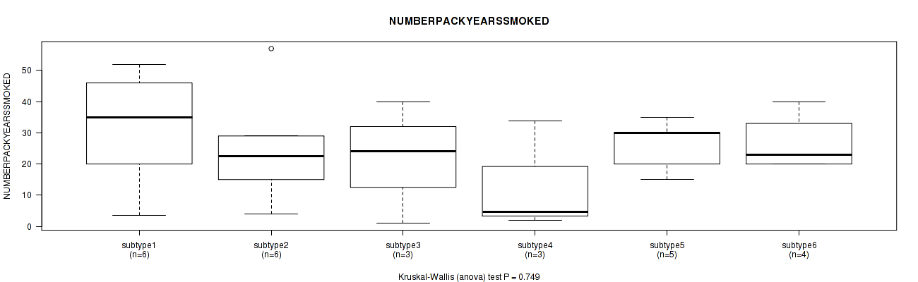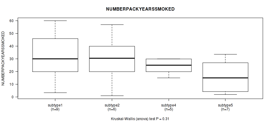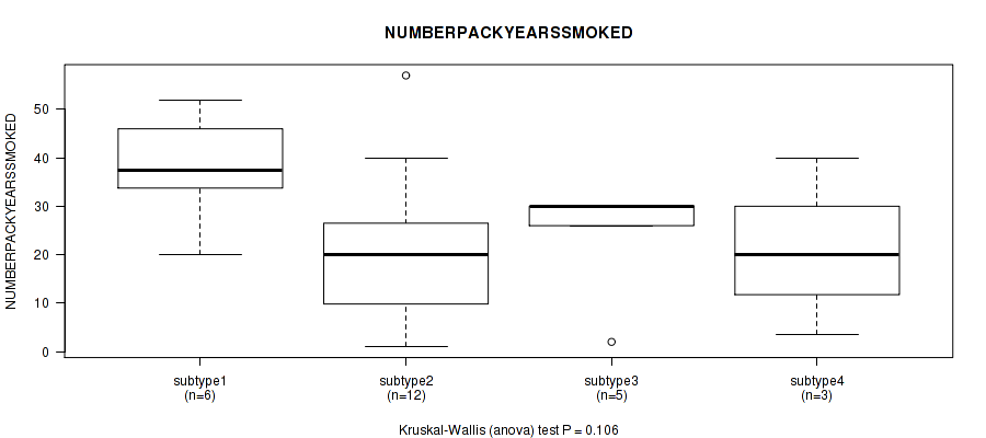 | NUMBERPACKYEARSSMOKED | Kruskal-Wallis (anova) |