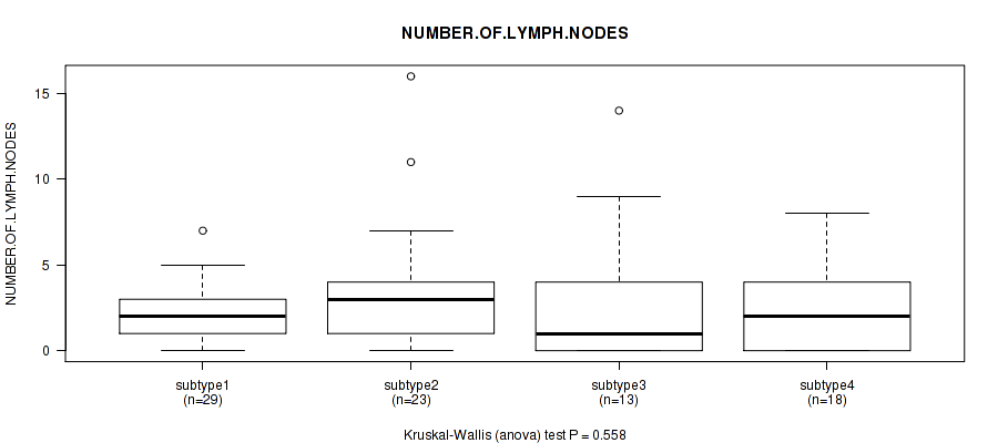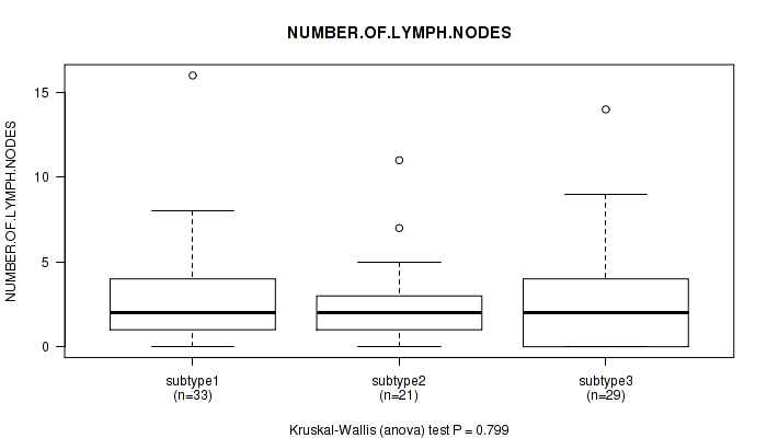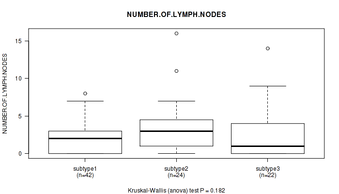 Figure S83. Get High-res Image Clustering Approach #7: 'MIRseq Mature CNMF subtypes' versus Clinical Feature #11: 'NUMBER.OF.LYMPH.NODES'