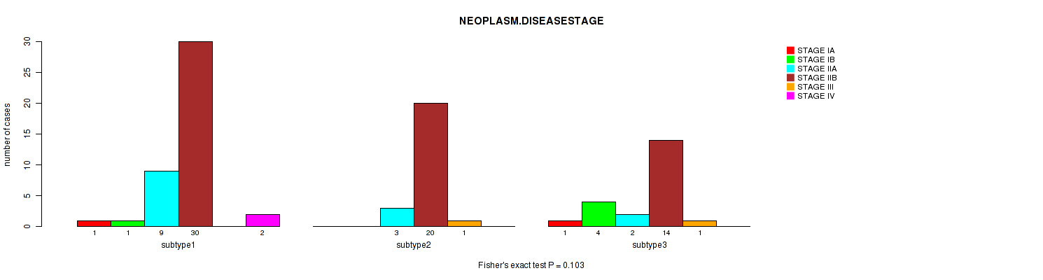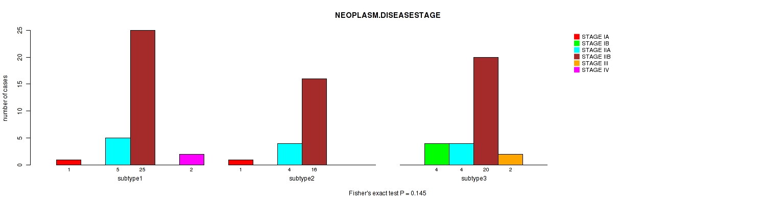 | NEOPLASM DISEASESTAGE | Fisher's exact test |