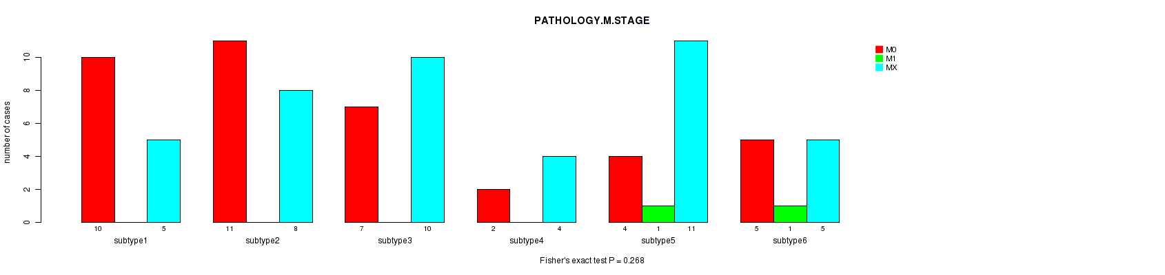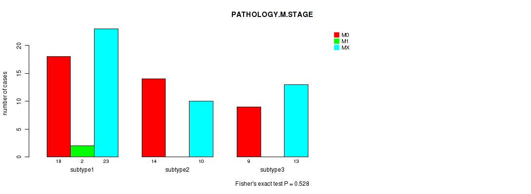 | PATHOLOGY M STAGE | Fisher's exact test |