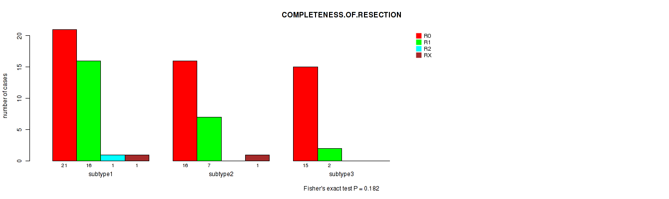 Table S102. Clustering Approach #8: 'MIRseq Mature cHierClus subtypes' versus Clinical Feature #10: 'COMPLETENESS.OF.RESECTION'