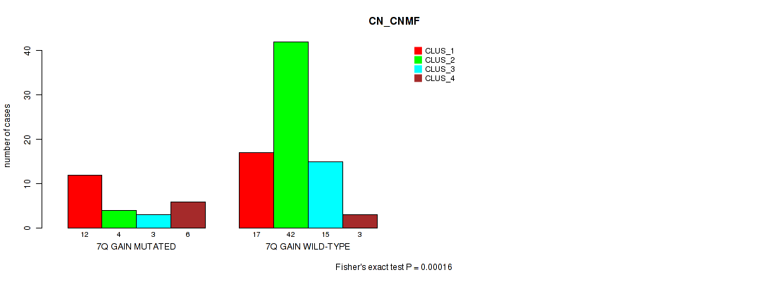 Table S26. Gene #74: '21q loss' versus Molecular Subtype #1: 'CN_CNMF'