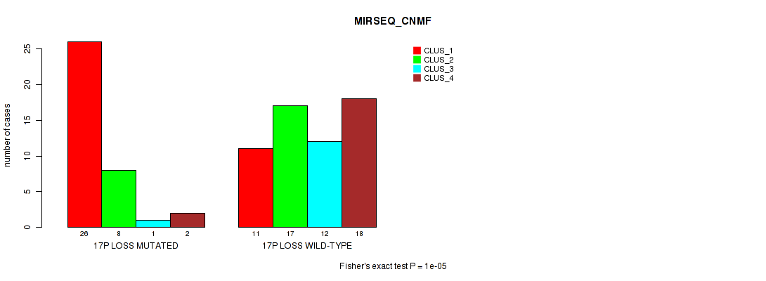 Table S21. Gene #66: '17p loss' versus Molecular Subtype #5: 'MIRSEQ_CNMF'