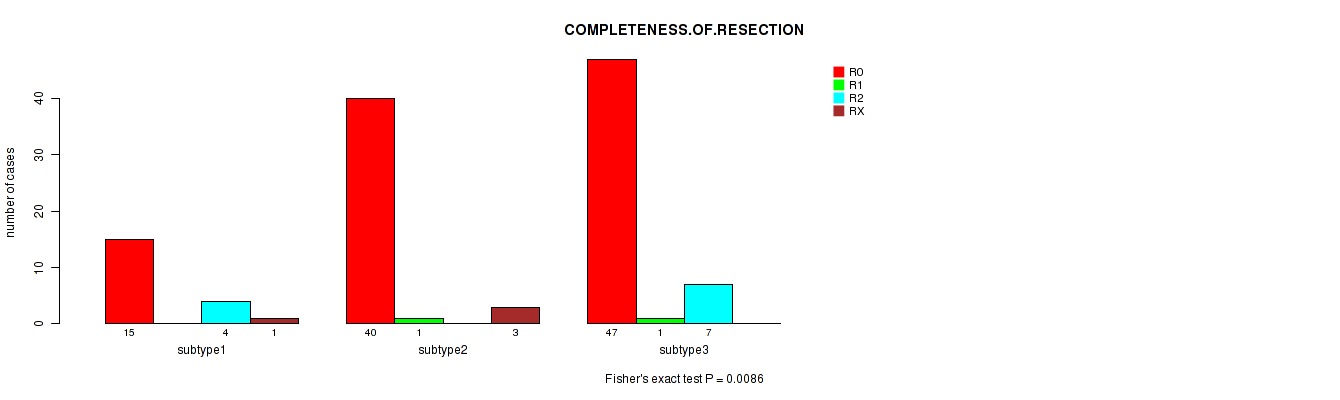 Figure S128. Get High-res Image Clustering Approach #11: 'MIRseq Mature CNMF subtypes' versus Clinical Feature #10: 'COMPLETENESS.OF.RESECTION'