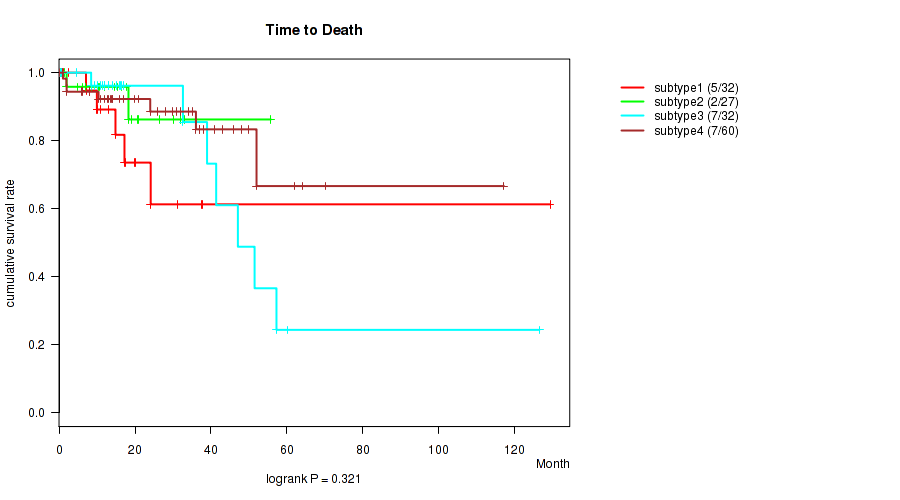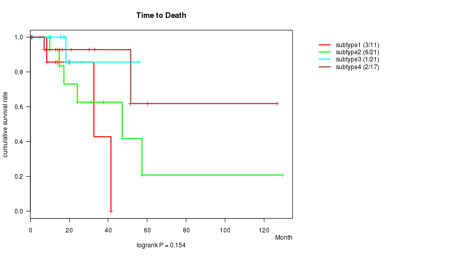 Table S143. Clustering Approach #12: 'MIRseq Mature cHierClus subtypes' versus Clinical Feature #1: 'Time to Death'