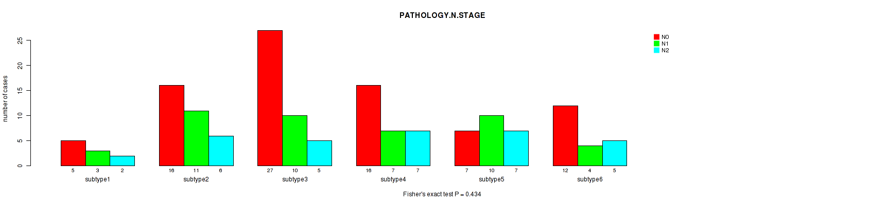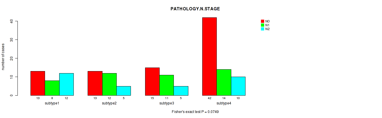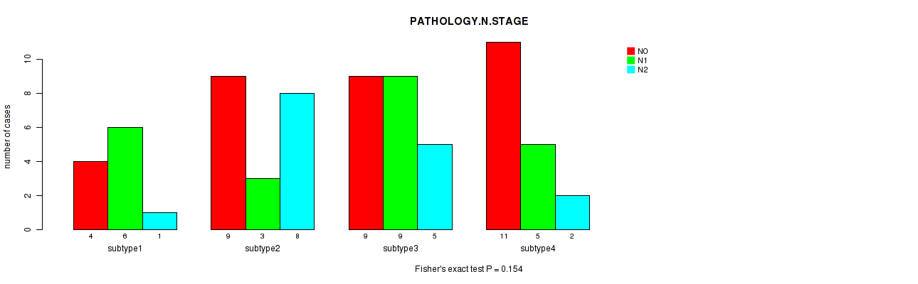 Table S147. Clustering Approach #12: 'MIRseq Mature cHierClus subtypes' versus Clinical Feature #5: 'PATHOLOGY.N.STAGE'