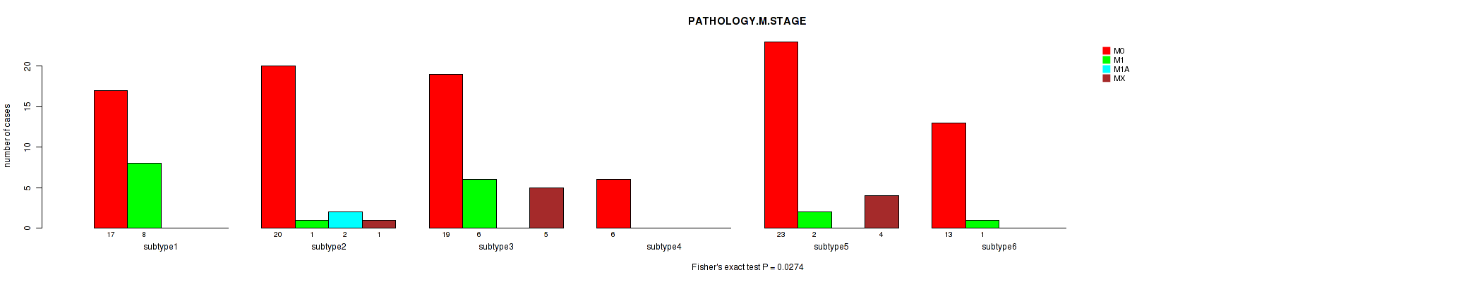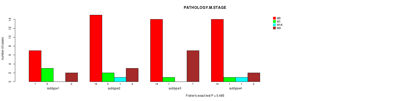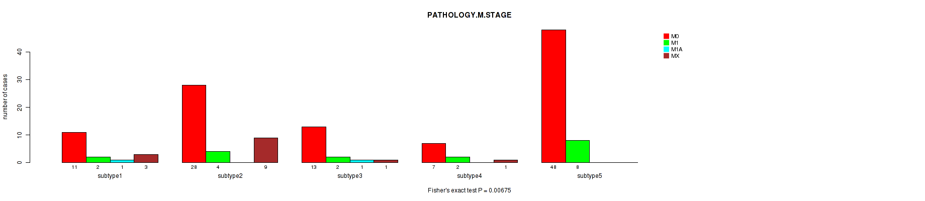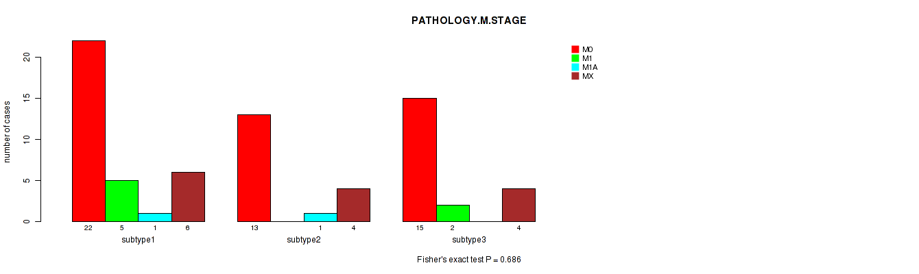 3 subtypes identified in current cancer cohort by 'MIRSEQ CHIERARCHICAL'. These subtypes correlate to 'PATHOLOGY.M.STAGE'.