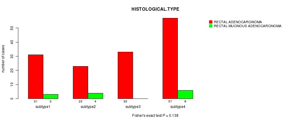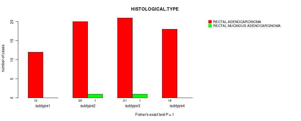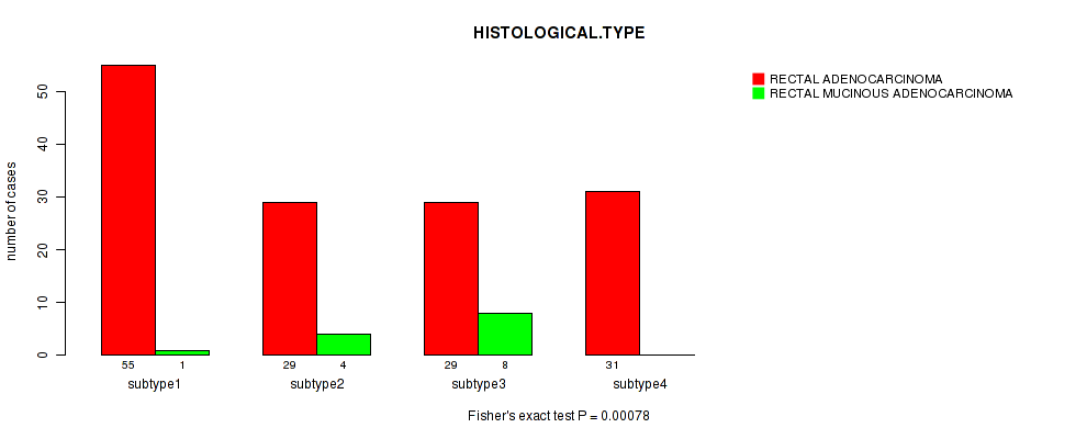 Consensus hierarchical clustering analysis on sequencing-based mRNA expression data identified 4 subtypes that correlate to 'HISTOLOGICAL.TYPE'.