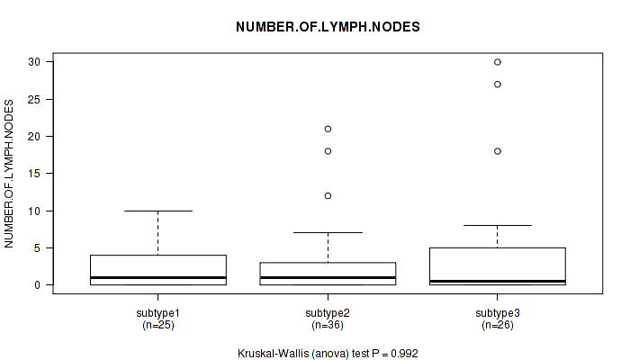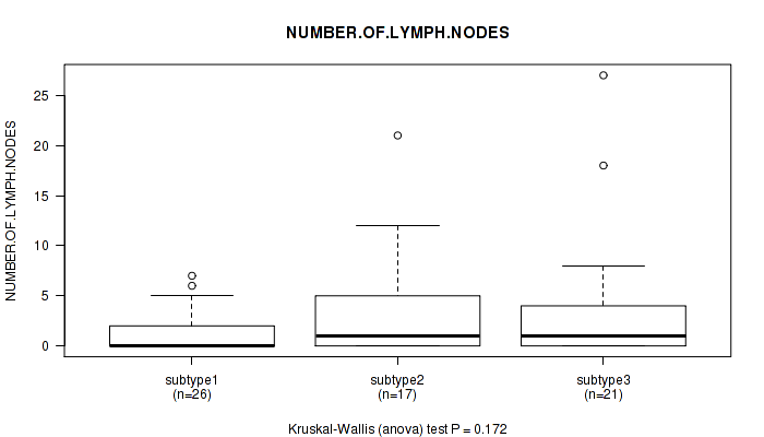 Figure S141. Get High-res Image Clustering Approach #12: 'MIRseq Mature cHierClus subtypes' versus Clinical Feature #11: 'NUMBER.OF.LYMPH.NODES'