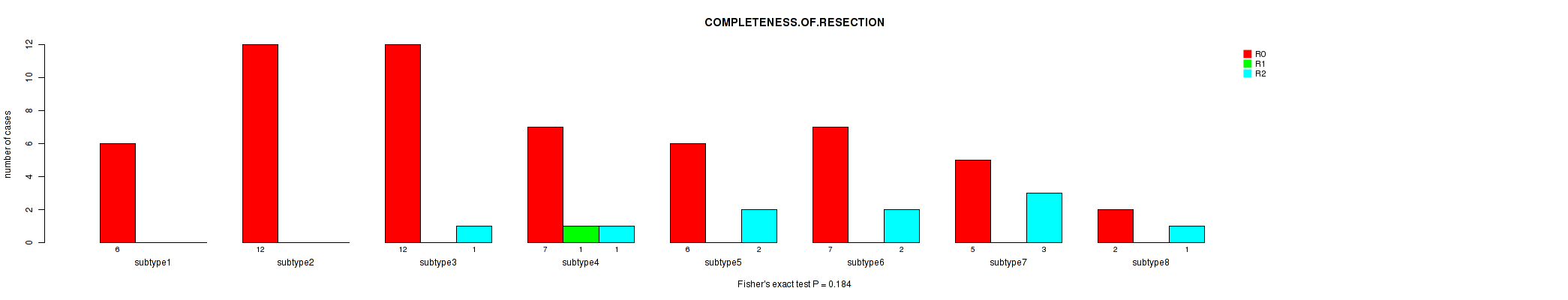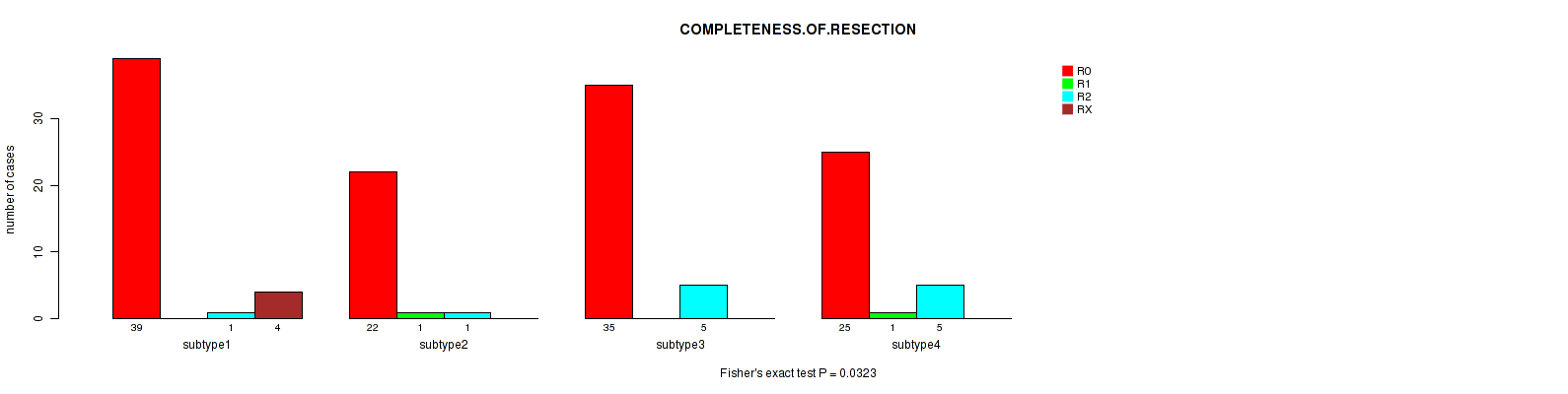 Figure S140. Get High-res Image Clustering Approach #12: 'MIRseq Mature cHierClus subtypes' versus Clinical Feature #10: 'COMPLETENESS.OF.RESECTION'