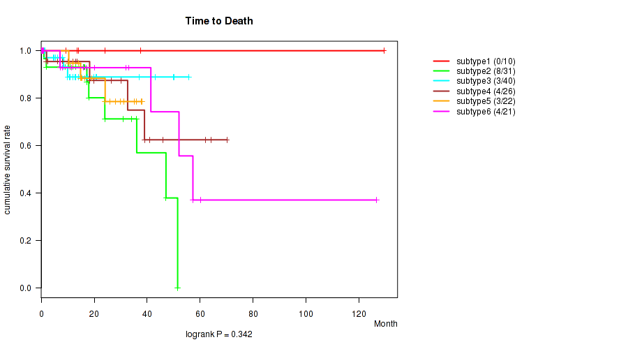 Figure S131. Get High-res Image Clustering Approach #12: 'MIRseq Mature cHierClus subtypes' versus Clinical Feature #1: 'Time to Death'