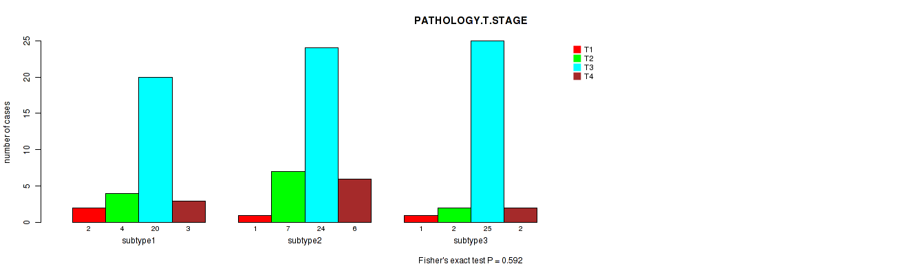 Figure S134. Get High-res Image Clustering Approach #12: 'MIRseq Mature cHierClus subtypes' versus Clinical Feature #4: 'PATHOLOGY.T.STAGE'
