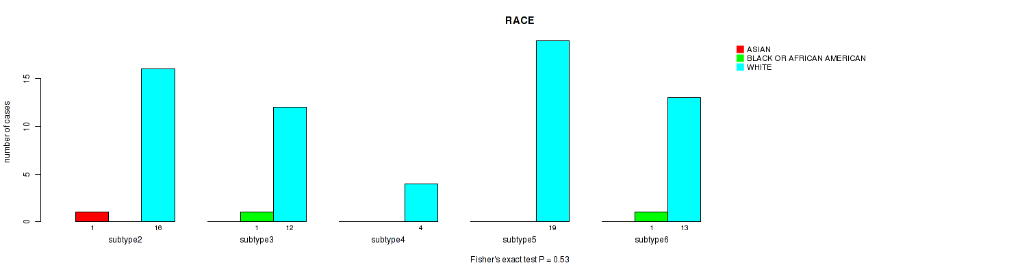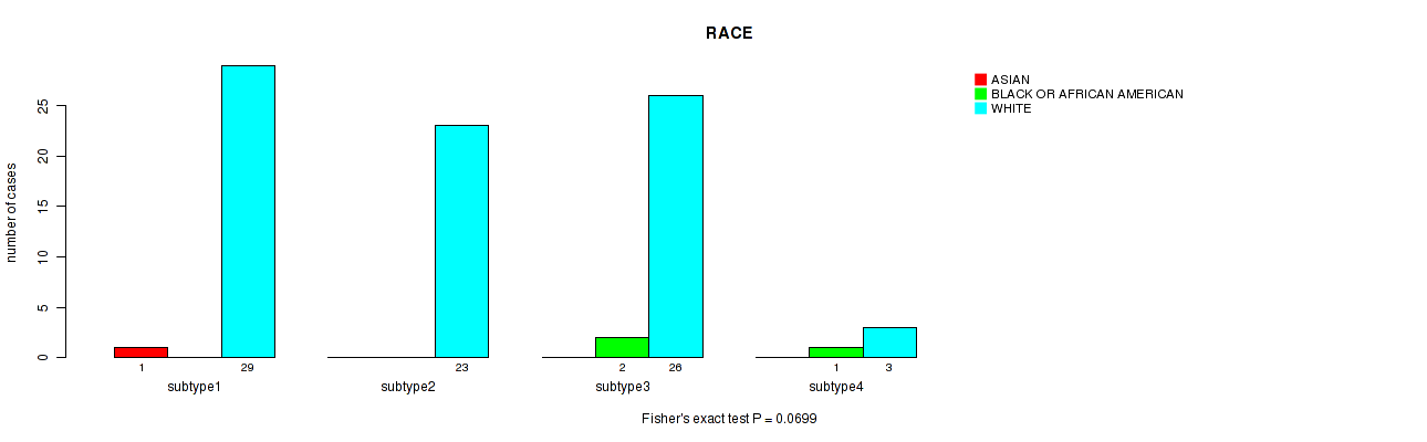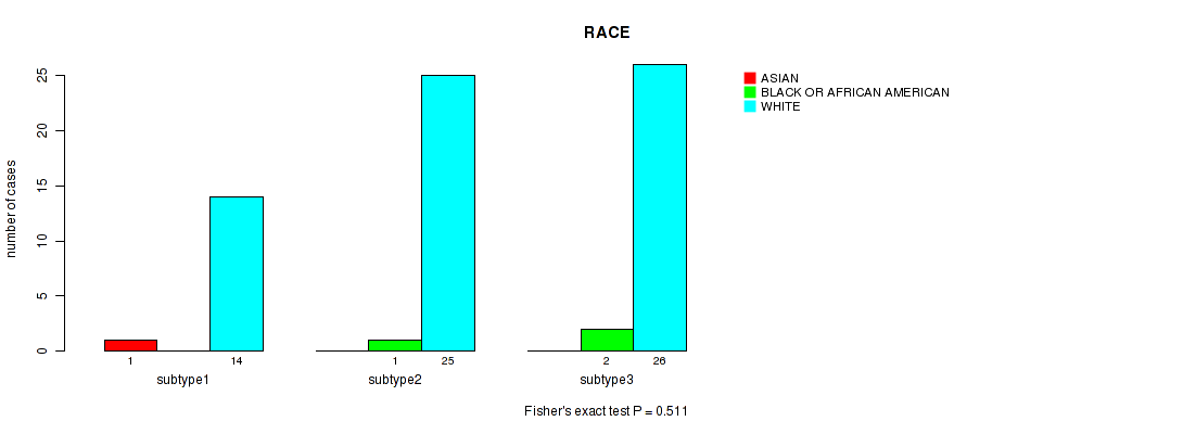 Table S141. Clustering Approach #11: 'MIRseq Mature CNMF subtypes' versus Clinical Feature #12: 'RACE'