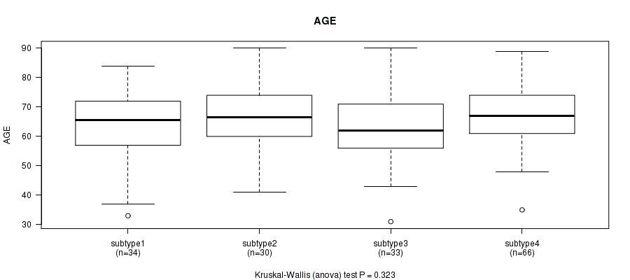 Figure S132. Get High-res Image Clustering Approach #12: 'MIRseq Mature cHierClus subtypes' versus Clinical Feature #2: 'AGE'