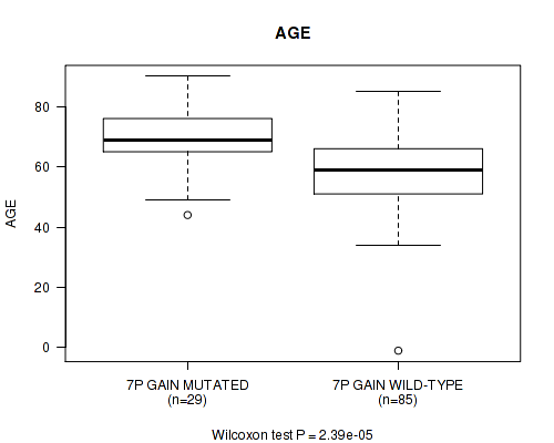 7p gain cnv correlated to 'AGE'.