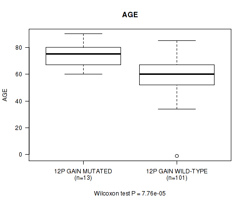 Figure S5. Get High-res Image Gene #23: '12p gain' versus Clinical Feature #2: 'AGE'