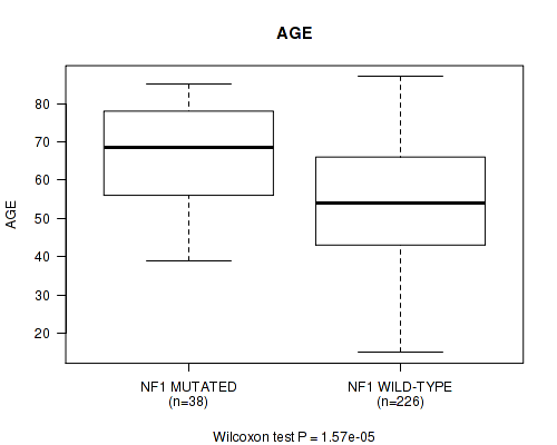 NF1 mutation correlated to 'AGE'.