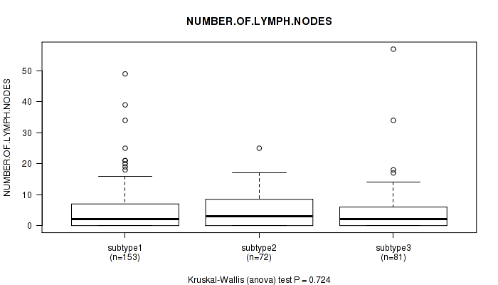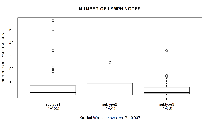 Figure S119. Get High-res Image Clustering Approach #10: 'MIRseq Mature cHierClus subtypes' versus Clinical Feature #11: 'NUMBER.OF.LYMPH.NODES'