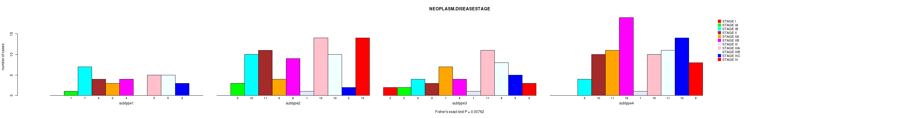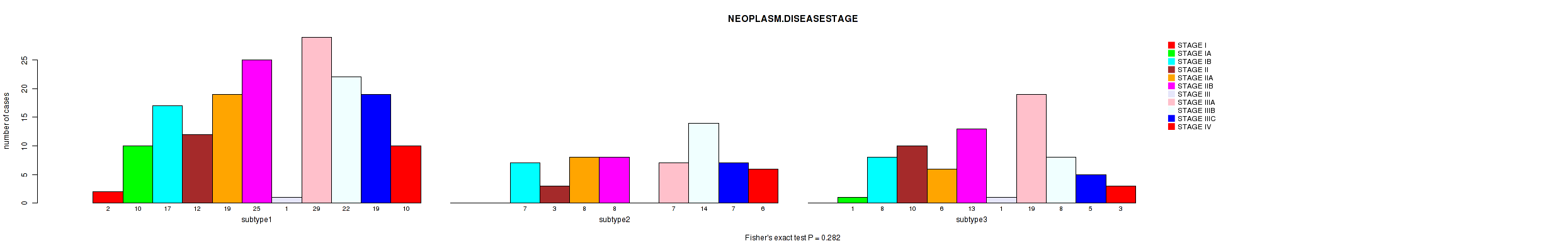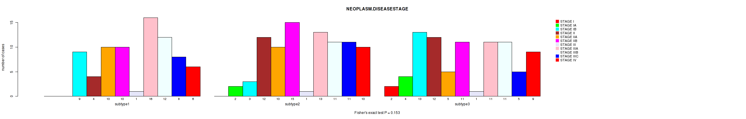 | NEOPLASM DISEASESTAGE | Fisher's exact test |