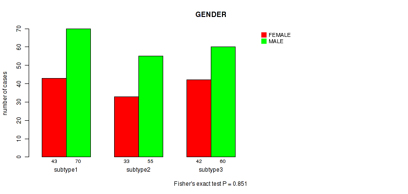 Figure S115. Get High-res Image Clustering Approach #10: 'MIRseq Mature cHierClus subtypes' versus Clinical Feature #7: 'GENDER'