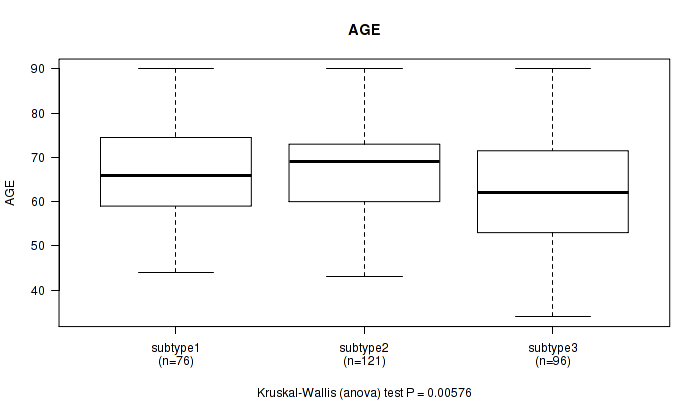 | AGE | Kruskal-Wallis (anova) |