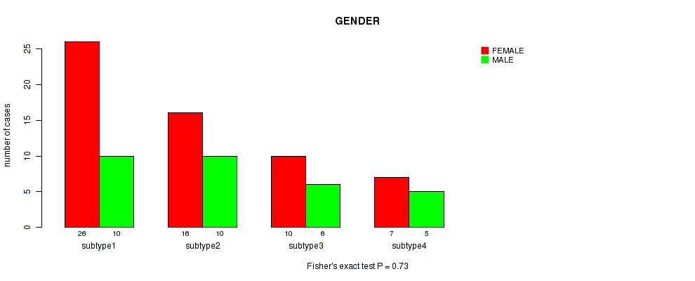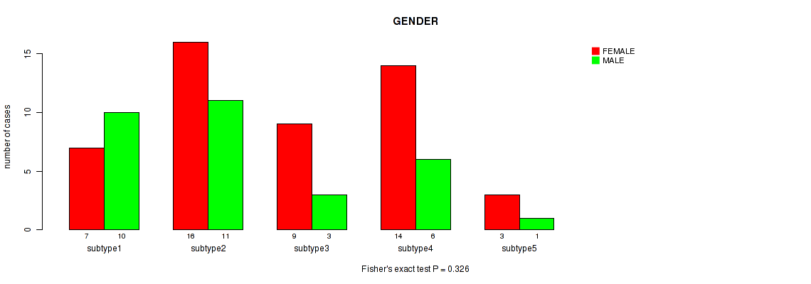 Figure S78. Get High-res Image Clustering Approach #10: 'MIRseq Mature cHierClus subtypes' versus Clinical Feature #6: 'GENDER'