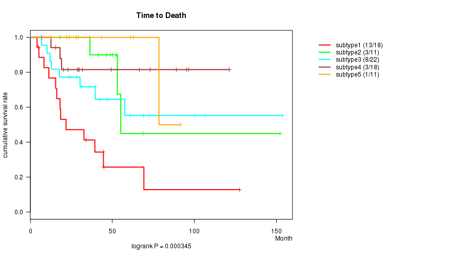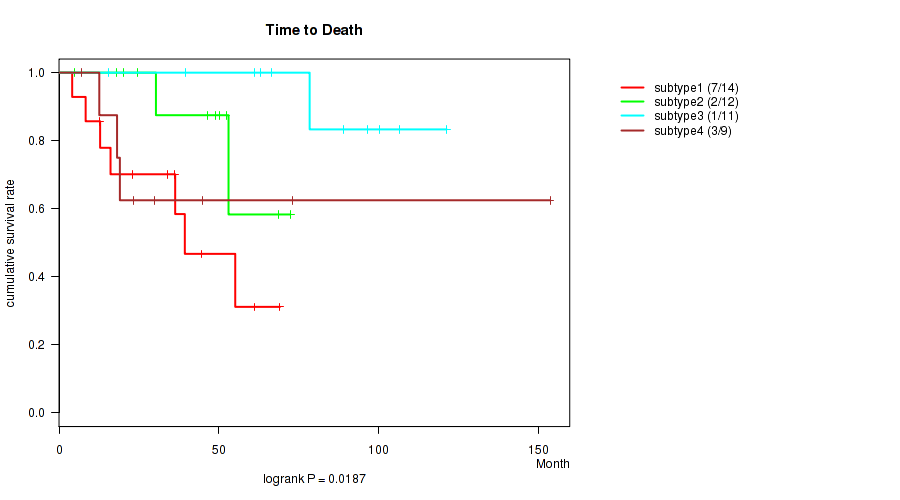 CNMF clustering analysis on sequencing-based mRNA expression data identified 4 subtypes that correlate to 'Time to Death'.