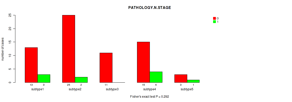 Figure S69. Get High-res Image Clustering Approach #9: 'MIRseq Mature CNMF subtypes' versus Clinical Feature #5: 'PATHOLOGY.N.STAGE'