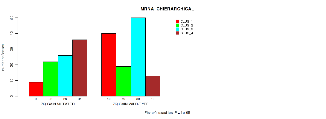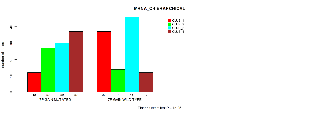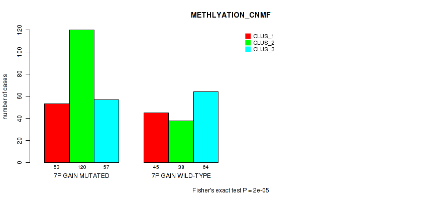 7p gain cnv correlated to 'MRNA_CHIERARCHICAL', 'CN_CNMF', 'METHLYATION_CNMF', 'MRNASEQ_CNMF', and 'MRNASEQ_CHIERARCHICAL'.