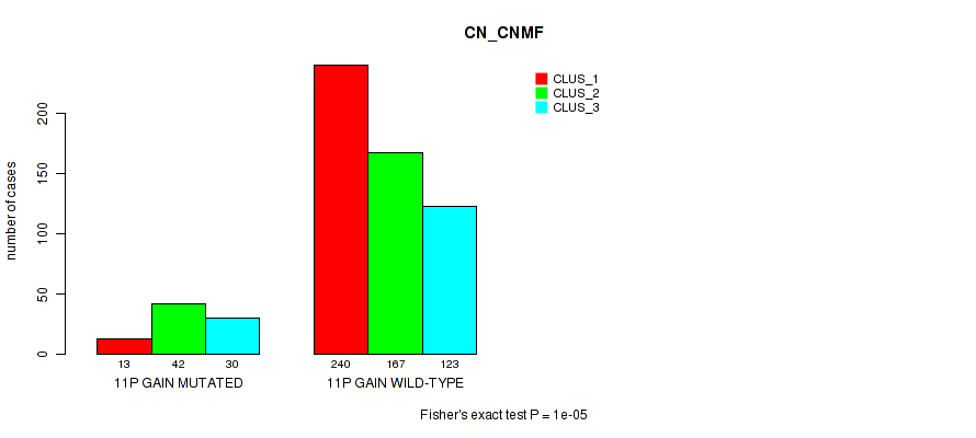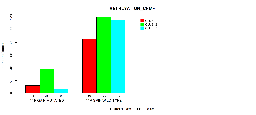 11p gain cnv correlated to 'CN_CNMF' and 'METHLYATION_CNMF'.