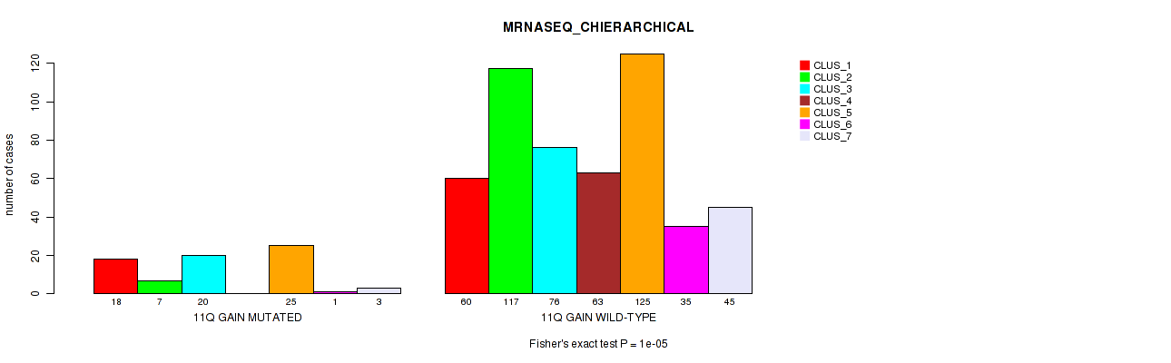 11q gain cnv correlated to 'CN_CNMF', 'METHLYATION_CNMF', 'MRNASEQ_CNMF', and 'MRNASEQ_CHIERARCHICAL'.