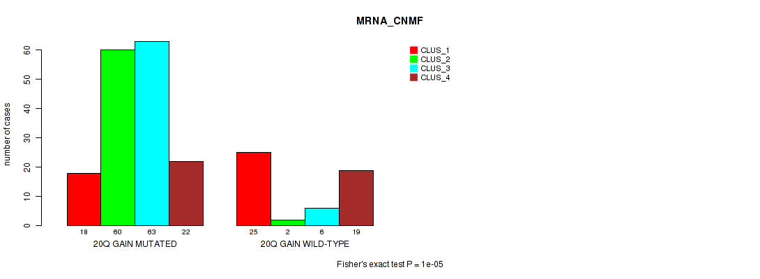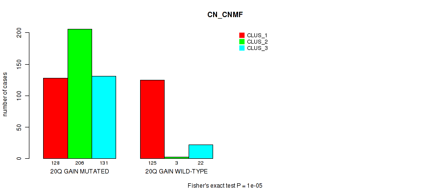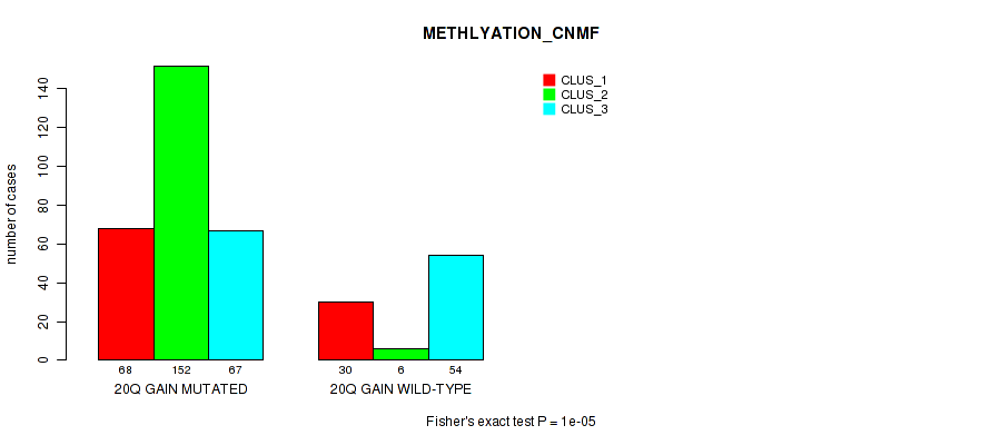 20q gain cnv correlated to 'MRNA_CNMF', 'MRNA_CHIERARCHICAL', 'CN_CNMF', 'METHLYATION_CNMF', 'MRNASEQ_CNMF', and 'MRNASEQ_CHIERARCHICAL'.