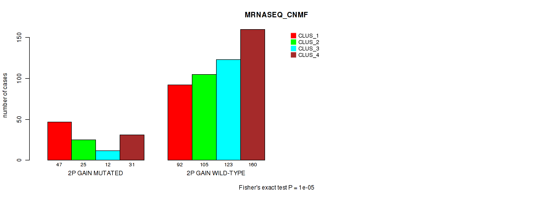 2p gain cnv correlated to 'MRNASEQ_CNMF' and 'MRNASEQ_CHIERARCHICAL'.