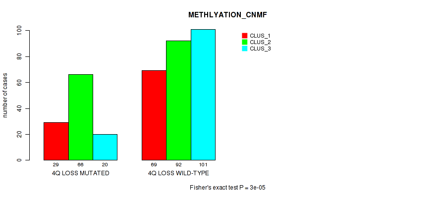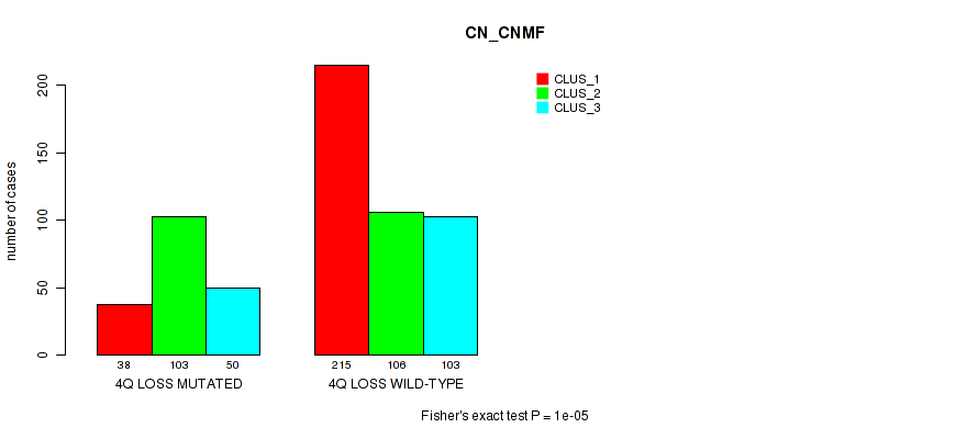 4q loss cnv correlated to 'CN_CNMF', 'METHLYATION_CNMF', and 'MRNASEQ_CHIERARCHICAL'.