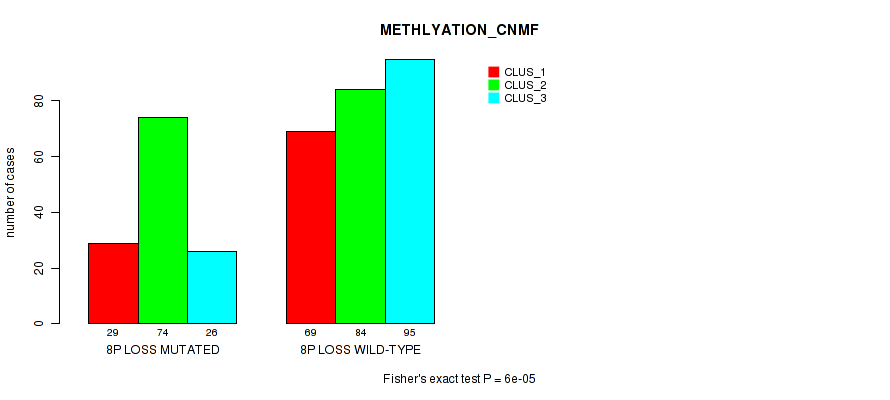 8p loss cnv correlated to 'CN_CNMF', 'METHLYATION_CNMF', and 'MRNASEQ_CHIERARCHICAL'.